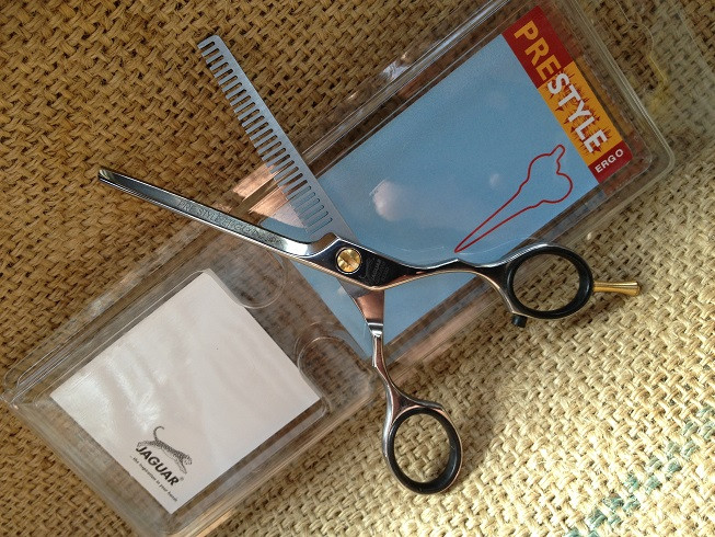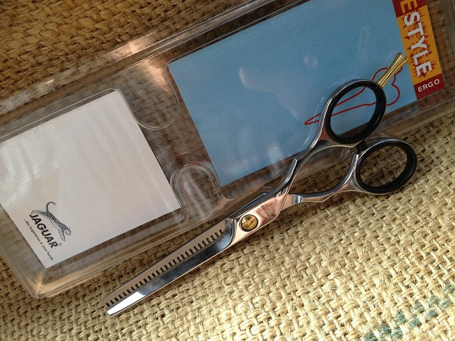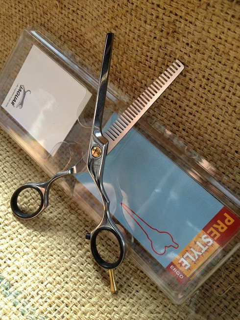 Jaguars Pre Style Ergo P Design 5.5" 28 tooth thinning or texturing scissor.