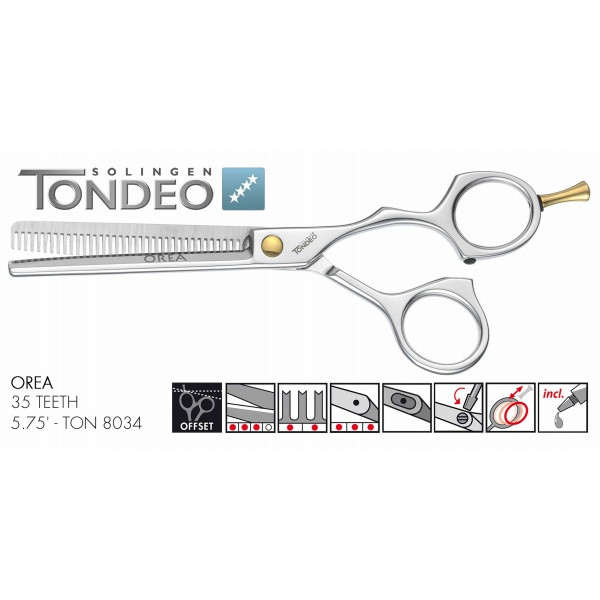 Tondeo Orea 35T 5.75" Thinning Scissor from Solingen Germany CategoriesHairdressing Scissors.Tondeo Hairdressing Scissors Solingen Germany.Tondeo Orea 35T 5.75" Thinning Scissor from Solingen Germany Tondeo Orea 35T 5.75" Thinning Scissor from Solingen Germany Tondeo Orea 35Tooth 5.75" Thinning Scissor from Solingen GermanyFree Shipping. Price: $745.00 Price: $460.00 Save 38.26%! Out of Stock